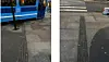 Hvis du følger ledelinje i oppgraderte Olav Vs gate havner du ute i en dyp vannrenne.Foto: Blindeforbundet