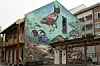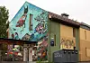 Veggen med fargesprakende sjøliv ved Akerselvas bredd