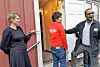 Omar Samy Gamal og Forwards Fredrik Fredeng klipper snora inn til de nye garderobene, mens Lille Tøyens Hanne Klægstad holder stramtFoto: Anders Høilund