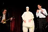 Medvirkende i forestillingen Uten bukse er (f.v): Karl Holte Aarø, Andreas Gregersen og Petronella Ibsen-Børnick.Foto: Tara Kristin Lysfjord