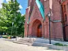 Uranienborg kirke er fra 1886, og er et av Oslos staseligste kirkebygg. En universell utforming av inngangspartiet fikk gemyttene i kok.Foto: Anders Høilund