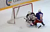 Grüner tar ut keeperen, men det fører bare til at Magnus Brekke Henriksen scorer for VIF. Det vil si at det dømmes teknisk mål idet Brekke Henriksen blir felt ureglementert i en åpenbar scoringsposisjon (pucken er aldri i mål, men dommeren vurderer at det garantert ville blitt mål dersom spilleren ikke hadde blitt hindret på en ureglementert måte). En avgjørelse vi ikke ser for ofte.