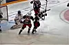 Etter drøyt 12 minutter tror alle i hallen at det er 3-0, da mannen med gullhjelmen, Andreas Stene, setter pucken i mål. Etter noe diskusjon i sekretariatet annullerer dommeren målet.