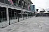 Det er her på torget utenfor stadion plan og bygg mener barnehagen må montere lekestativer. Foto: Christian Boger