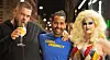 Rapperen Karsten Marcussen (t.v), styreleder i Chemfriendly Norge, Andres Lekanger, og dragartisten Tanja McEnzie brukte verdens overdosedag til å dele ut brukerutstyr for rusmidler på utestedet Elsker i Oslo sentrum.Foto: Einar Hyndøy