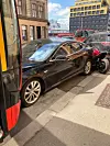 Bussen smashet inn i to biler og en motorsykkel, som hindret bussen i å fortsette ferden nedover Schweigaards gate.Foto: Anette Eggan Laskemoen