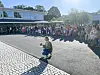 Foreldrene var nesten like spente som barna deres. Bak henger flagget oppe.