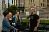 Første dag og Samuel Rostøl snakker med en støttespiller utenfor Stortinget. Foto: Morten Lauveng Jørgensen