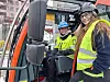 Til v. næringsbyråd Anita Leirvik North (H) som får prøvesitte elkrana til kranfører Siv Hege Barstad.Foto: Anders Høilund