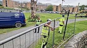 Rikshospitalet ved å sende inn tunge maskiner og sette opp gjerder.