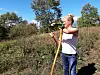 Å slå gress som skal bli dyrefôr er også en landbruksaktivitet. Her kvesser Helen Engelstad Kvalem ljåen på Ola Narr i bydel GrünerløkkaFoto: Anders Høilund
