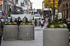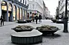 2017: Terrorsikring på Karl Johan blir midlertidige blomsterkasser. 2021: De midlertidige blomsterkassene står der fortsatt