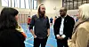 Daglig leder i Korsvoll IL, Mathias Falk, i samtale med byrådene Victoria Marie Evensen, Omar Samy Gamal og direktør for Oslobygg, Eli Grimsby (til høyre).Foto: Anders Høilund