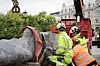 Skulpturen, laget av kunstner Christine Aspelund, ble løftet på plass med heisekran på Eidsvolls plass foran Stortinget.Foto: Sigbjørn P. Kiserud / Stortinget