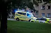 Politiet og ambulanse på plass ved blokkene nedenfor Skøyenåsen T-banestasjon. Her ble mannen politiet hr siktet for drapsforsøk pågrepet.