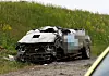 Politiet ved vraket av bilen den drapssiktede mannen i 20-årene svingte i motgående kjøreretning på E6 langs Mjøsa, mellom Morskogen og Espa, ved sekstiden tirsdag morgen.Foto: Martin Benedikt Sjue / Eidsvoll Ullensaker Blad / NTB