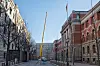 Den midlertidige konstruksjonen hever seg over både Høyesterett og G-blokken med Finansdepartementet.