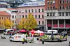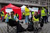 De streikende vekterne står samlet på Youngstorget.Foto: Morten Lauveng