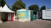 Folkene bak det nye serveringstilbudet i St. Hanshaugen-parken legger siste hånd på verket mens de venter på skjenkebevilling. De håper på å åpne i neste uke hvis de får skjenkebevillingen da, fortalte de når VårtOslo var på besøk for å ta bilder i dag, lørdag 21. juli. I verste fall vurderer de å åpne før skjenkebevilling er på plass, men folk forventer å kunne kjøpe seg en øl, så det vil de helst unngå. Foto: Tarjei Kidd Olsen