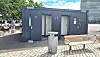 Dagens midlertidige toalettbygg på Operastranda vil bli stående til tidligst 2024.Foto: Christian Boger