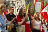 Noen hundre personer møtte opp på Eidsvolls plass foran Stortinget.