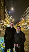 – I tett samarbeid med Oslo kommune, har Muslimsk Dialognettverk arbeidet for å videreføre denne vakre tradisjonen, sier Arshad Jamil. Her sammen med byrådsleder Eirik Lae Solberg (H) ved ramadanbelysningen ved Rådhuset i fjor.Foto: Muslimsk Dialognettverk