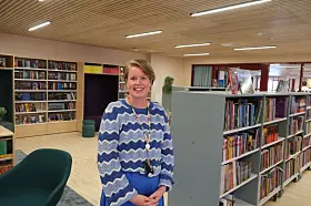 Bibliotekar Tonje Kjerstad er stolt over det nye biblioteket.Foto: Petter Terning
