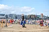 Også spydkasting på sekk kunne publikummet få med seg.Foto: Petter Terning