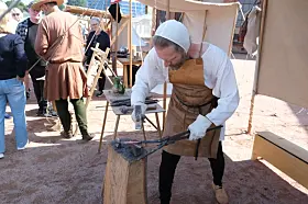 Å smi våpen og andre redskaper var ikke for de utålmodige i middelalderen. Her illustreres det av foreningen Kongshirden 1308.Foto: Petter Terning