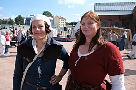 Cathrine Kleivdal (t.v.) er festivalsjef for Oslo Middelalderfestival, som arrangeres om våren. Her står hun med Anja Boman, som driver med middelaldermusikk.Foto: Petter Terning