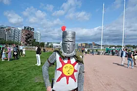 Den anonyme ridderen var også med i kampene, men ville ikke ta av seg hjelmen.Foto: Petter Terning