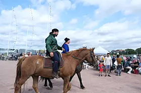 Hesteryttere var ikke et uvanlig syn i Middelalderparken denne dagen.Foto: Petter Terning