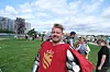 Øystein Gjengset, visekaptein i klubben Norsemen, som underholdt massene med litt ridder-action.Foto: Petter Terning