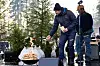 Feståret braker løs med «Hele Norge Båler», med bål-arrangementer over hele landet. Her sammen med ordfører Anne Lindboe og prosjektleder for Friluftslivets år Marte Bøhm Nordahl.Foto: Lise Åserud / NTB