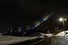 Holmenkollbakken er mandag kveld lyst opp i de ukrainske fargene gult og blått.Foto: Terje Pedersen / NTB