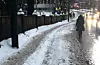 Oslo kommune unnlot å måke i to uker. Mente fortauet i Drammensveien var gårdeiers ansvar. Nå beklager bymiljøetaten og lover å rydde fortauet. Foto: Carl-Henrik Bastiansen