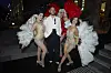 Chris Holsten omgitt av dansere, fjærboaer og glamour på trappene opp til åpningen av Petter Stordalen nye hotell Sommerro på Solli plass på Frogner. Foto: Terje Pedersen / NTBTerje Pedersen