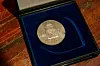 Interessen for kunst og gamle gjenstander har han hatt hele livet – og som tiåring var han en ivrig myntsamler. Han har siden stort sett kvittet seg med myntene, men viser oss en liten eske. I esken ligger en blank sølvmynt og hviler i blå fløyel.