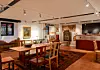 De første som møter oss inne i lokalet er Bjørnson og Ibsen, i form av ca 60 cm høye statuer i bronse. De er laget av Nina Sundby, som blant annet er kjent for skulpturene av Leif Juster utenfor Chat Noir og den av Per Aabel ved Nationaltheateret, forteller Sagen.