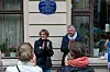Initiativtaker Gro Brennhovd sammen med generalsekretær i Selskabet for Oslo Byes Vel, Ole Rikard Høisæther, avduket det foreløpig siste av over 450 blå skilt i Oslo der formålet er å fortelle kulturhistorie i kortform.Foto: Aslak Malmåsen