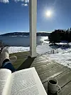 – Jeg som sitter ute på hytta til noen venner og leser en bok og drikker kaffe. Jeg tror jeg aldri har hatt så lav hvilepuls som da, sier Tamina om bildet.Foto: Privat