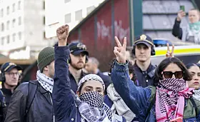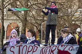 De opplyser samtidig at de demonstrerer i solidaritet med palestinerne på den krigsherjede Gazastripen.