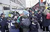 Rundt klokken 12.30, en halvtime etter at møtet skulle ha startet, ble flere demonstranter båret eller ført bort fra stedet av politiet.
