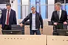 Arfan Bhatti sammen med forsvarer John Christian Elden (t.v.) og Bernt Heiberg i rettssal 250 i Oslo tingrett i forbindelse med straffesaken som startet mot ham tirsdag.Foto: Javad Parsa / NTB