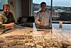 Fra 8. etasje i den hittil høyeste bygningen i hjertet av Nydalen styrer administrerende direktør Øystein F. Thorup og prosjektleder Ola Thon de videre planene for prosjektene i området. Den aktuelle parktomta sees i bakkant litt til høyre i modellen av Nydalen, bortenfor BI.Foto: Paul Torvik Nilsen