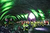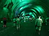 Inviterte gjester på vei ned til framtidens Lysaker stasjon, som under de besøkendes hodelykter minnet om Dovregubbens hallFoto: Anders Høilund