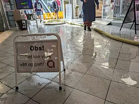 – Dette er utenfor vår kontroll. Det skal være en tilbakeslagsventil nederst på Karl Johan som ikke har fungert optimalt som dermed har forårsaket at vannet har trengt seg inn på kjøpesenteret, utdyper han.