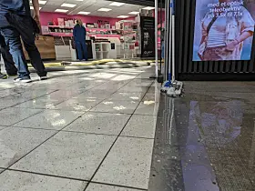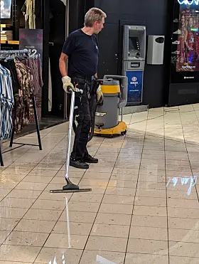 – Det er bestilt pumpebil og vaskebyrå for å tørke opp vannet, sier driftsleder Espen Herness i Olav Thon Gruppen som eier Arkaden Shopping.