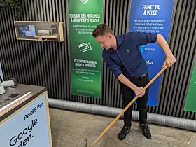 – Det var ikke dette jeg så for meg jeg skulle gjøre da jeg kom på jobb i da, fastslår Fabian, som er ansatt hos Elkjøp Phone House på Arkaden Shopping.