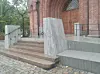 «Den nye rampen bryter vesentlig med det som ble godkjent i 2018. Granittheller, storgatestein og granittvanger ble valgt for å skape harmoni med eksisterende kirkebygg og kirketrapp. De omforente materialvalgene har i sin helhet blitt erstattet med betong.»